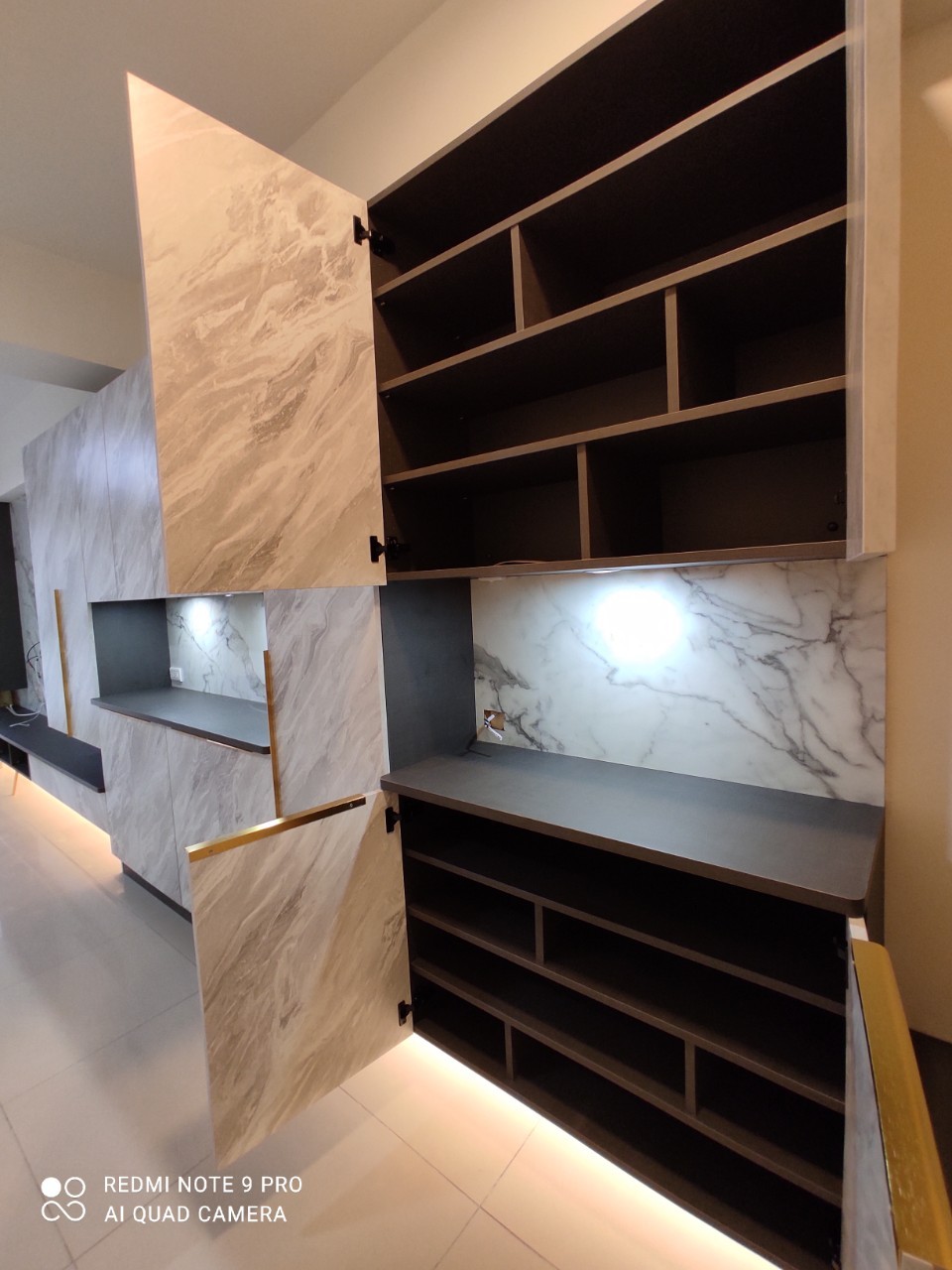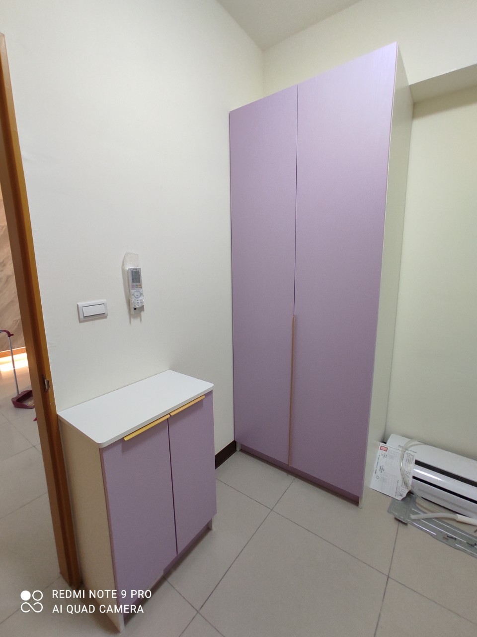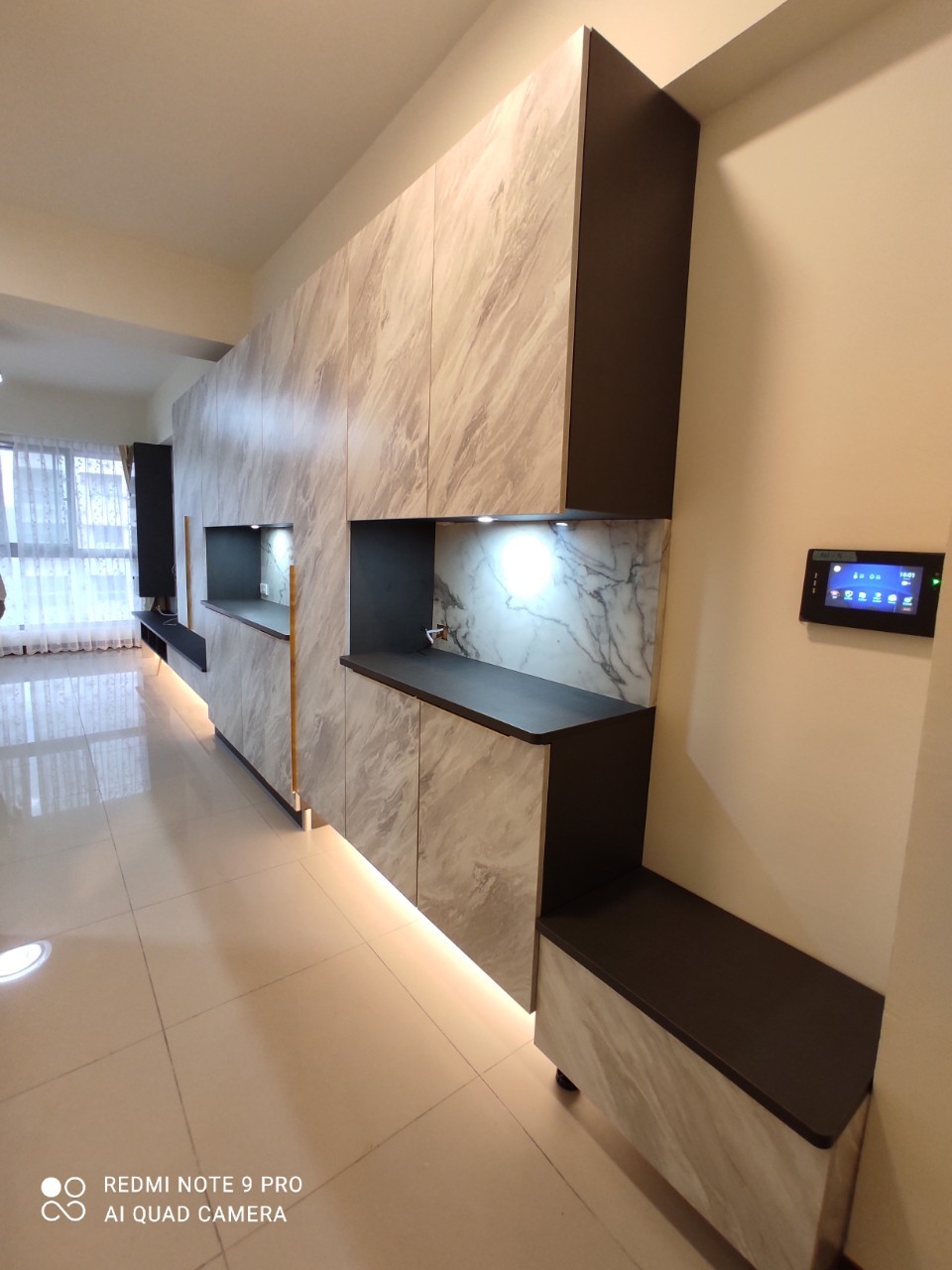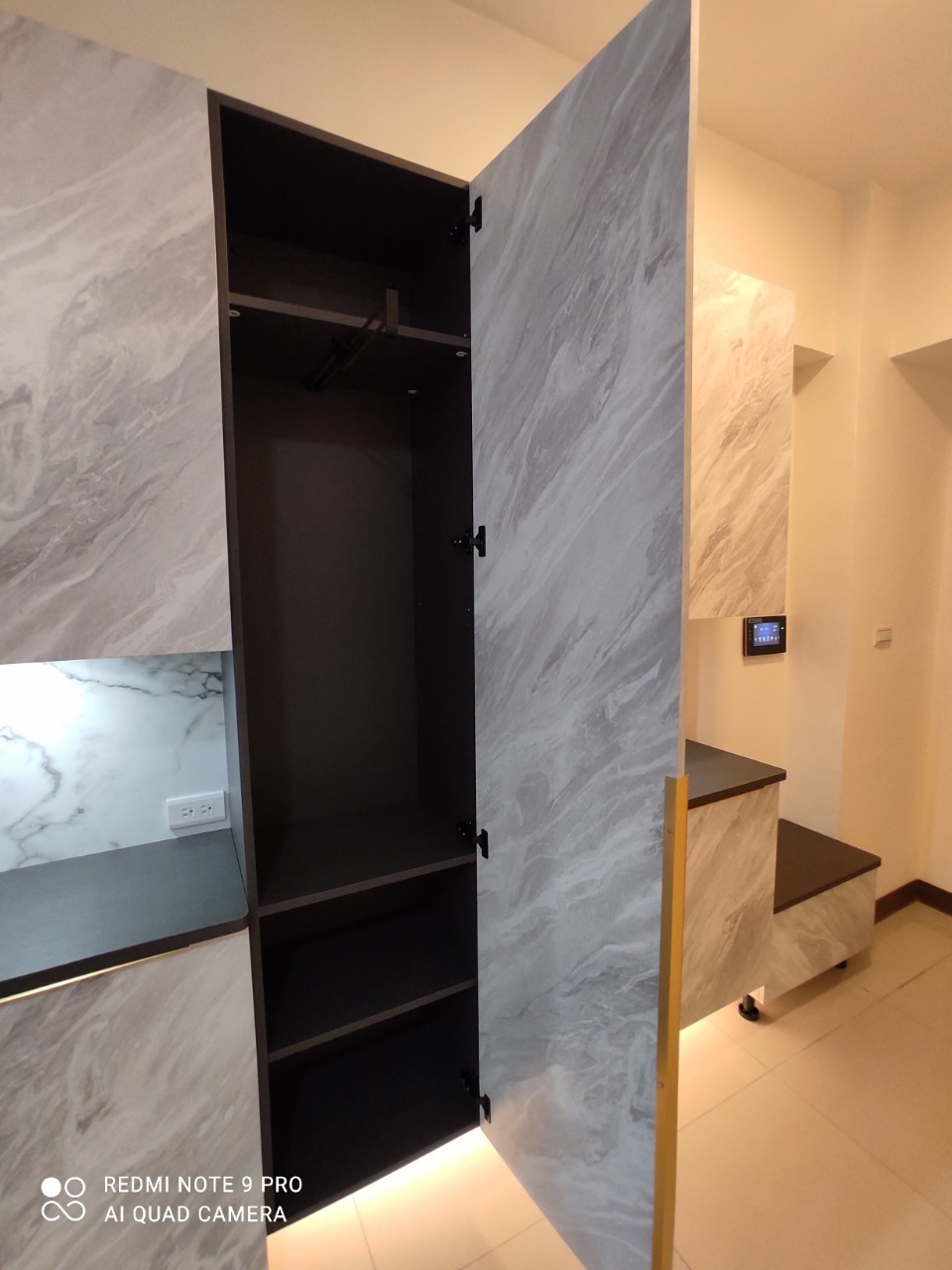 利用浮雲大理石紋系統板加上金屬法絲紋把手