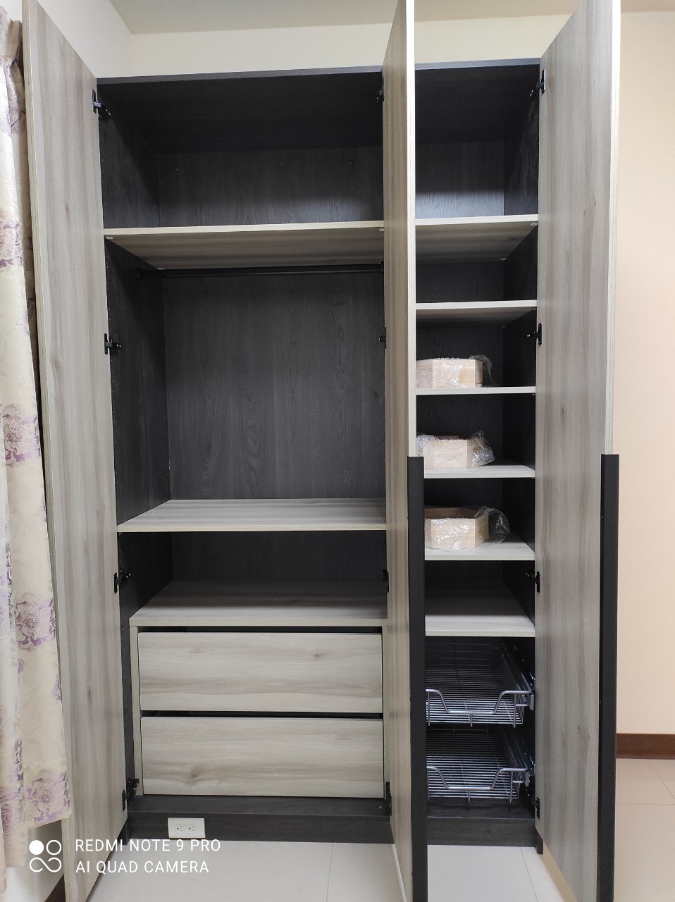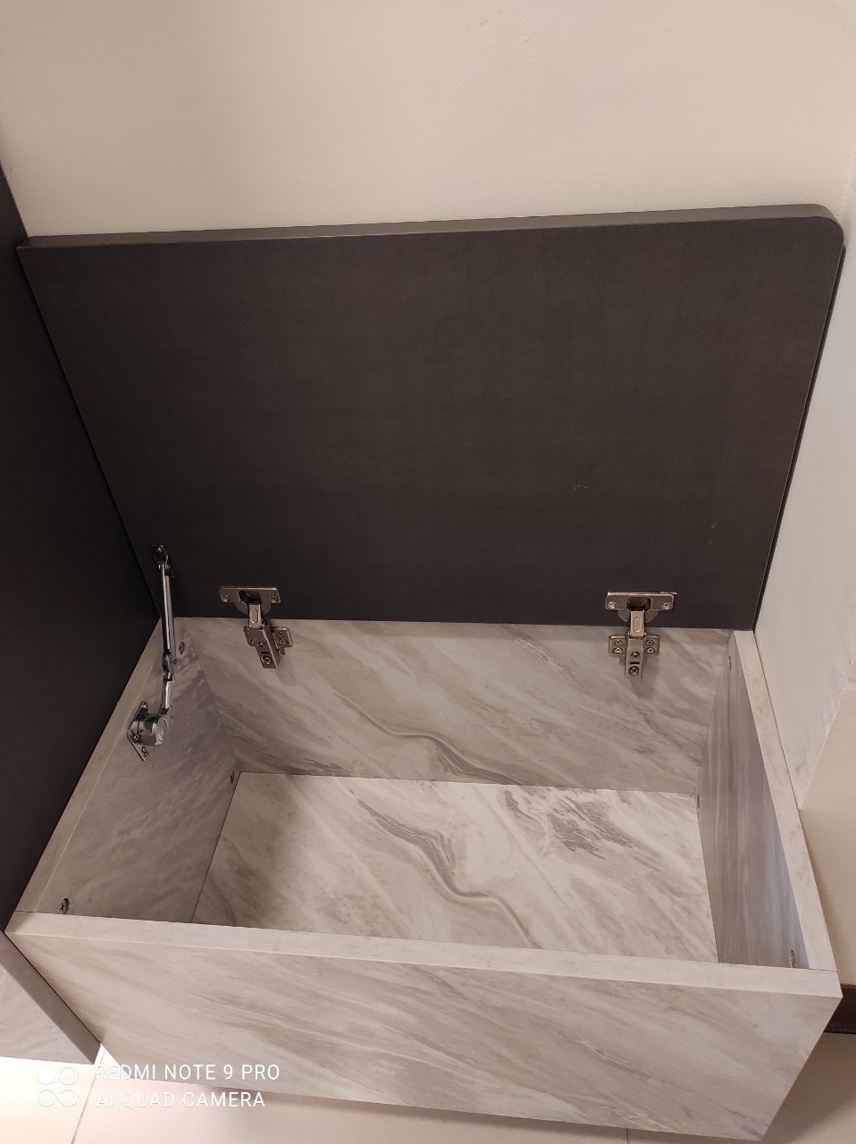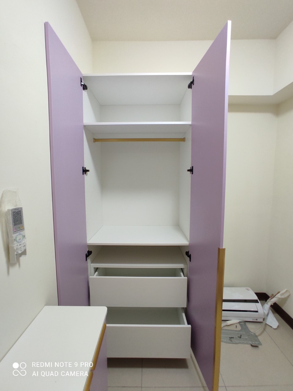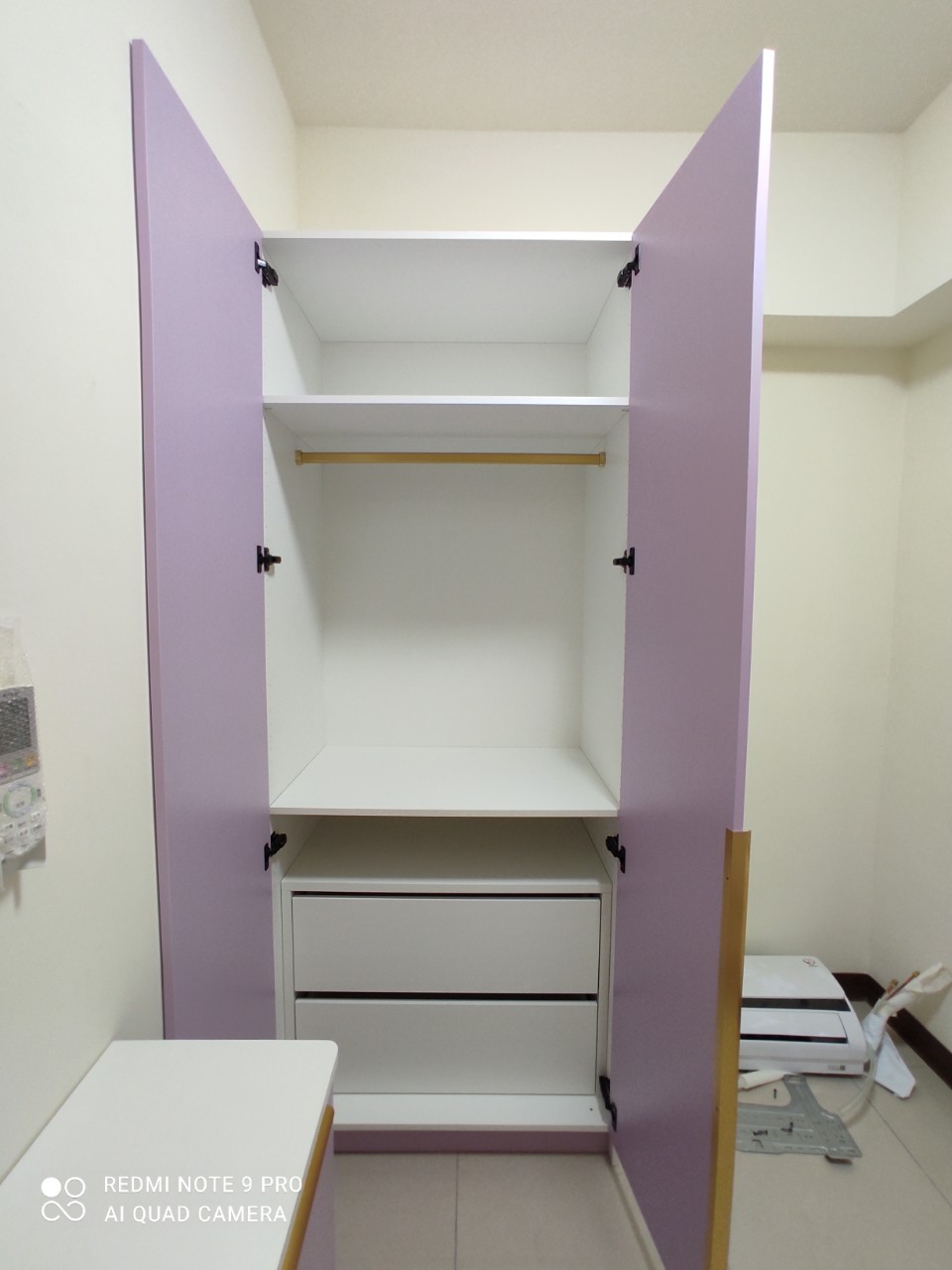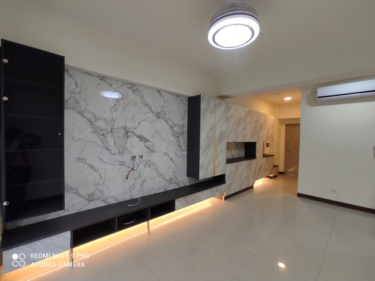 利用浮雲大理石紋系統板加上金屬法絲紋把手
